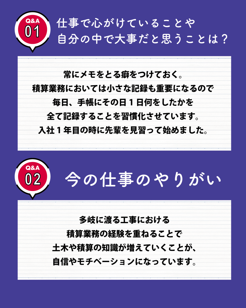 それぞれの部署で活躍する3年目社員たちが、今携わっている業務への心がけややりがい、思い出に残っていることなど、想いを語ってくれました。