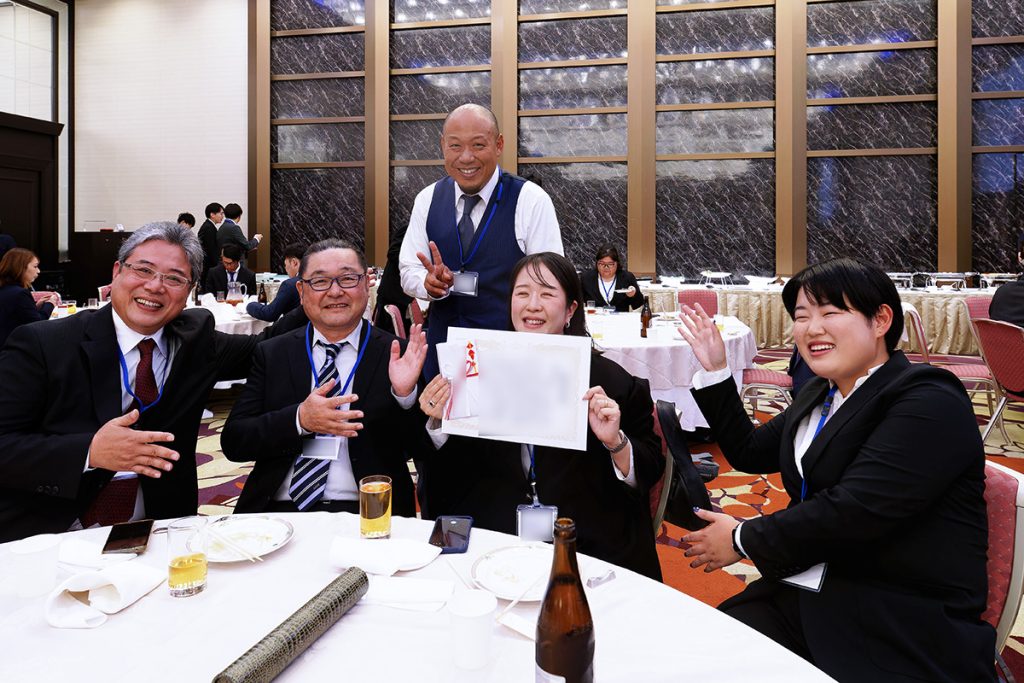 また本年度は、永年勤続表彰に加え、サプライズで特に活躍した社員・チームに贈られる賞の表彰を行いました。日々の業務に真摯に向き合ってきた成果が称えられる場面では、会場全体が温かな空気に包まれ、社員同士がお互いの努力を称え合うひとときとなりました。個人の力だけでなく、チームとしての支え合いが会社の成長を支えていることを改めて実感する機会となりました。