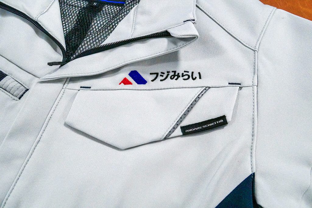 カラーは清潔感のあるライトグレーを基調に、アクセントとしてネイビーを配置。胸元には「フジみらい」のロゴが入り、一体感を感じられます。