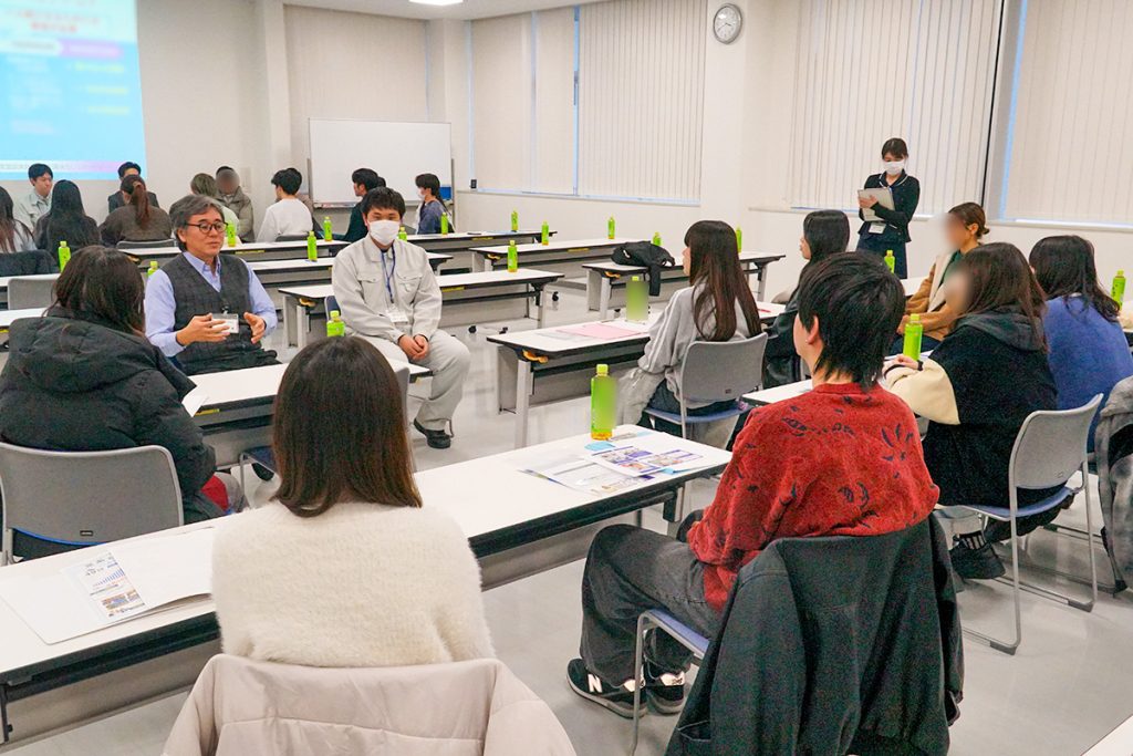 理念や人材育成など、経営ビジョンを掲げ実践している企業として当社もお声掛けいただき、26名の学生さんを本社でお迎えしました。